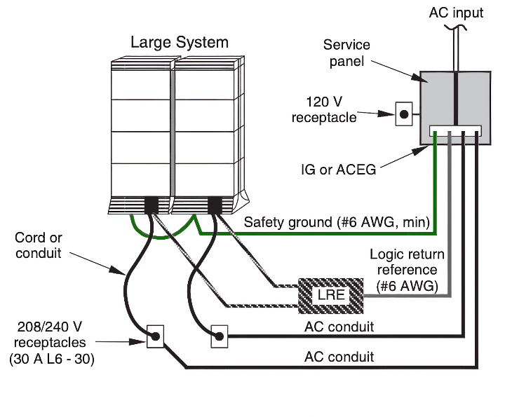 Note: As a safety precaution, all AC service panels should be located in an area that is easily accessible at all times. Each circuit breaker should be clearly marked to identify the system component or components it services.